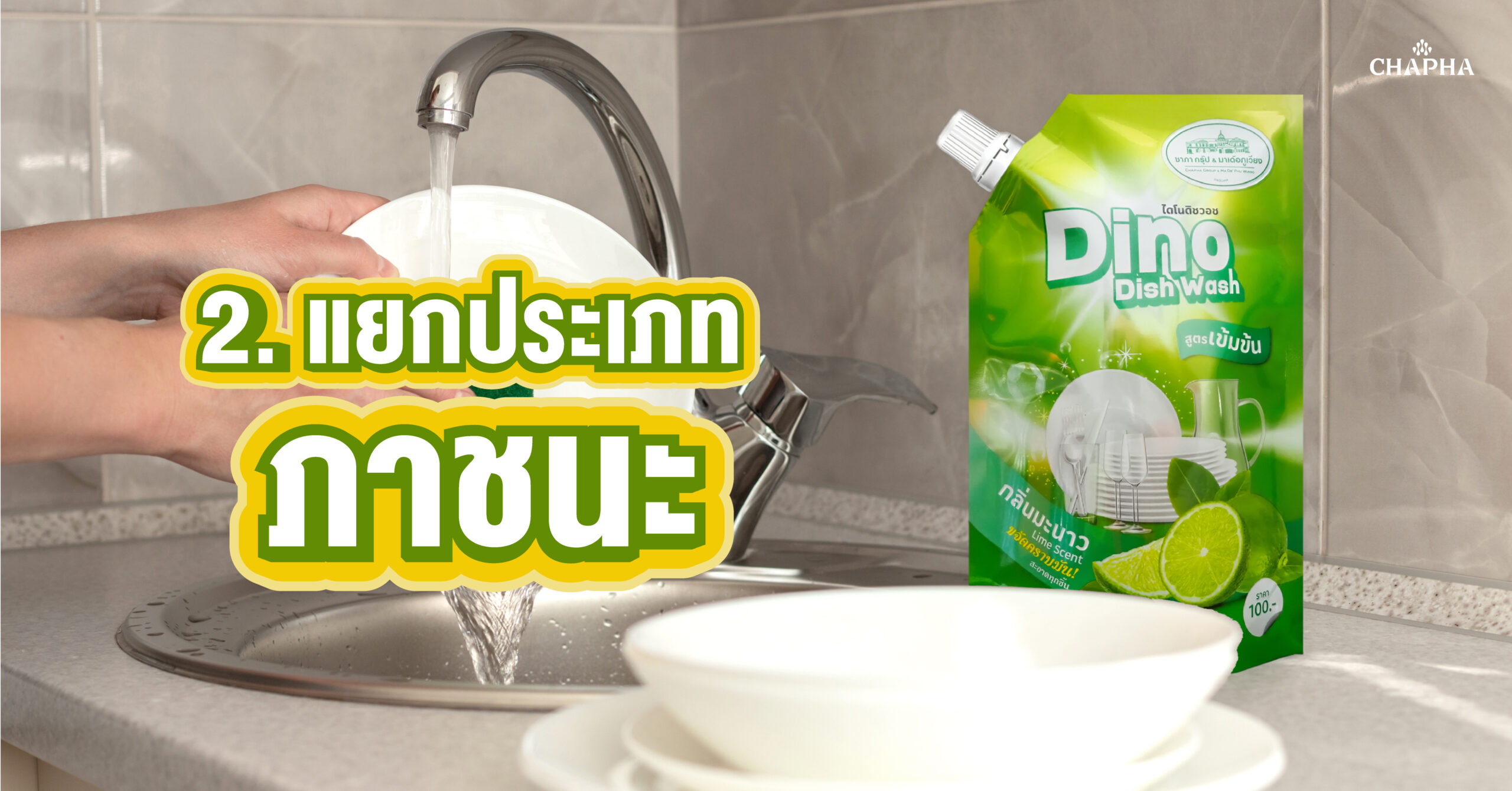 แชร์วิธี ล้างจานอย่างไรให้สะอาด ไร้คราบมัน Homeบทความแชร์วิธี ล้างจานอย่างไรให้สะอาด ไร้คราบมัน เข้าชม 32 คราบสกปรกและคราบมัน เป็นปัญหาที่ทำให้ไม่อยากล้างจาน บางครั้งแม้ล้างแล้วก็ยังคงมีคราบตกค้างงอยู่ เพื่อแก้ปัญหานี้ ชาภากรุ๊ป จึงรวบรวม 7 วิธีการล้างจานที่ช่วยให้ง่าายขึ้น สะอาด รวดเร็ว คราบหนักก็หายเกลี้ยง 1. เลือกน้ำยาล้างจานคุณภาพดีสิ่งที่ควรให้ความสำคัญอันดับแรกคือ การเลือกน้ำยาล้างจานที่มีคุณภาพดี อย่าง Dino Dish Wash ที่จะช่วยกำจัดคราบสกปรกและคราบมันให้หมดไปได้ โดยไม่ทิ้งสารตกค้างและปลอดภัย 2. แยกประเภทภาชนะวิธีล้างจานที่จะช่วยทำให้ล้างไวขึ้นอีกหนึ่งอย่าง คือ การจัดระเบียบ และแยกประเภทของภาชนะนั้นก่อนที่จะลงมือล้างจาน เพื่อไม่ให้อ้างล้างจานดูยุ่งเหยิง และมีพื้นที่เพียงพอ สะดวกสำหรับการล้างจานด้วย 3. แช่น้ำ หรือน้ำผสมน้ำยาล้างจานทิ้งไว้ในส่วนของจานและชามที่มีคราบหนักฝังลึก ล้างออกยากและเปื้อนอยู่ แนะนำให้ผสมน้ำยาล้างจานและแช่ทิ้งเอาไว้ก่อนสักพัก เพราะการทำแบบนี้จะทำให้คราบหนักที่ติดอยู่อ่อนตัวลง และง่ายต่อการทำความสะอาด 4. ล้างภาชนะที่มีคราบน้อยที่สุดก่อนลำดับการล้างสำคัญมาก ให้เลือกล้างแก้วก่อนเปป็นอันดับแรก เนื่องจากมีคราบสกปรกน้อยที่สุด และลำดับต่อมาคือเลือกล้างช้อน-ส้อม ก่อนที่จะไปล้างจาน เพราะช้อนส-ส้อม สามารถติดคราบสกปรกได้มากกว่าจานนั่นเอง 5. ทำไป ล้างไป ป้องกันจานกองโตในทุกครั้งของการทำอาหาร ปริมาณของจานและอุปกรณ์ที่ใช้จะมีเยอะมากขึ้น เพื่อไม่ให้คุณเหนื่อยกับการล้างจานในภายหลัง แนะนำว่าในระหว่างทำอาหาร ให้คุณค่อยๆ ทยอยล้างจานและอุปกรณ์ที่ใช้ทำอาหารไปพร้อมๆกับการทำอาหารด้วยเลยจะดีที่สุด