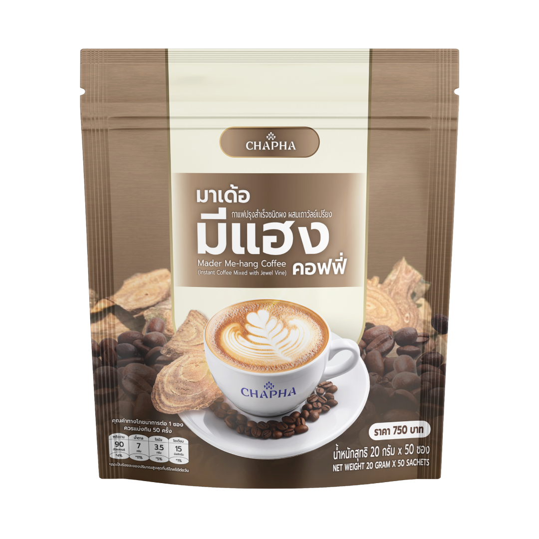 ส่วนประกอบ : กาแฟคุณภาพดี คาเฟอีนตํ่า / นํ้าตาลทรายแดง ไม่ฟอกสี